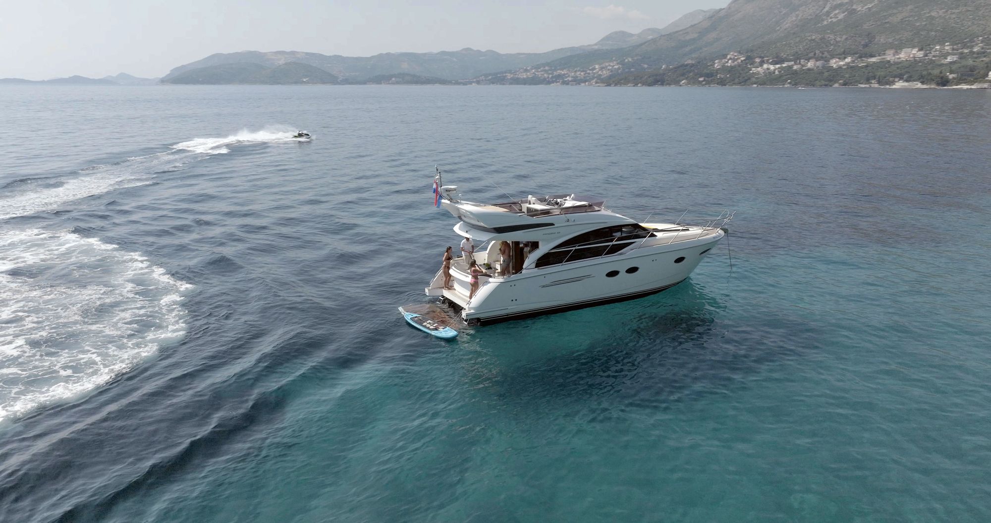 Cruising on the Princess F43 Flybridge delivers a seamless blend of luxury and excitement. From the elevated flybridge helm, you’ll enjoy breathtaking views as you glide across crystal-clear waters, exploring hidden coves, secluded beaches, and the stunning coastline surrounding Dubrovnik.